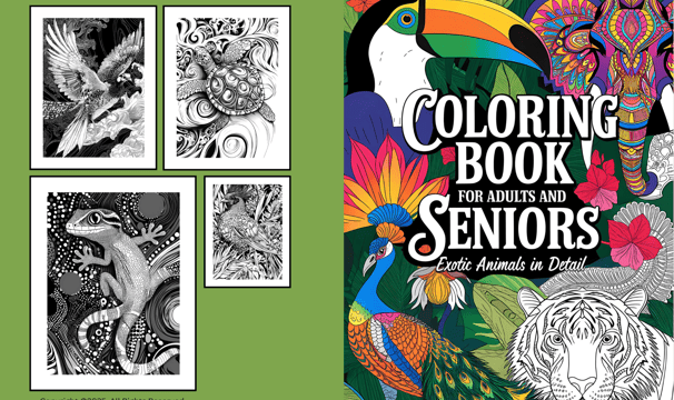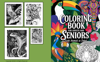 Libros para colorear Adultos y personas mayores. Animales exóticos con detalles.