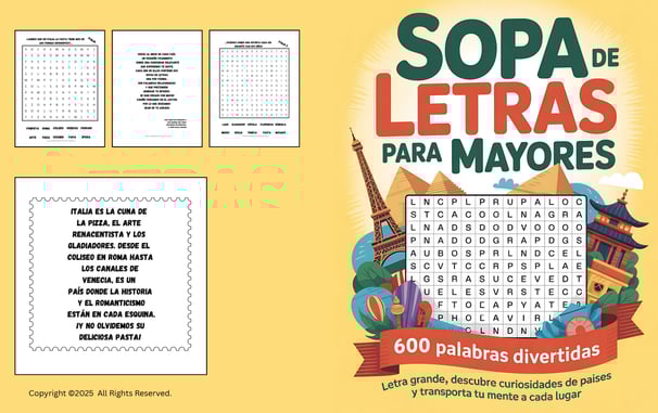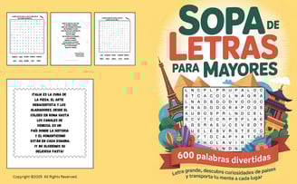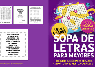 Descubre nuestros libros de sopas de letras inspirados en los 5 continentes. Cada libro dispone de palabras relacionadas con los países de cada continente pero para dar un toque entretenido se incluyen curiosidades que harán tu lectura mucho más interesante. Aprender del mundo disfrutando del entretenimiento de este pasatiempo.